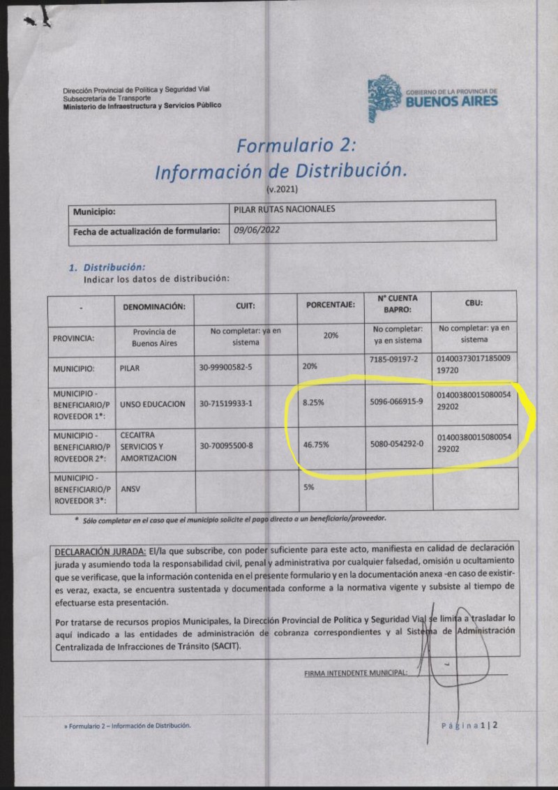 Los pagos se realizan a través de lo que se denomina el Formulario 2. Hasta hace algunos años los intendentes no quedaban involucrados en el proceso y la firma quedaba a cargo del área de transporte del gobierno provincial. Sin embargo, fue María Eugenia Vidal quien cortó con ese mecanismo y obligó a los intendentes a que se hagan cargo de los convenios y que firmen cada planilla de pagos.