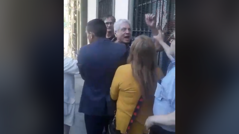 Mientras se desarrollaba una recorrida de Santilli por el centro quilmeño, un grupo de vecinos se acercó a manifestarse en rechazo al gobierno libertario en la vereda de enfrente. Al detectar ese grupo, Gil se cruzó sacado y, a los gritos, lanzó golpes de puño contra una manifestante.